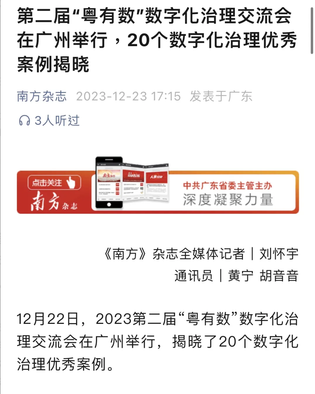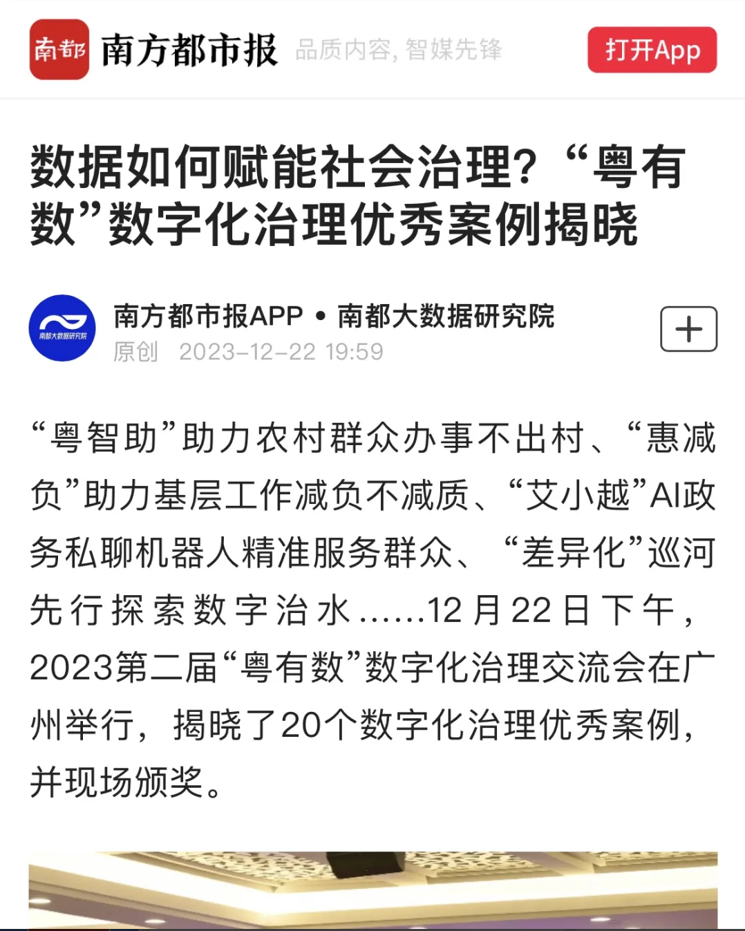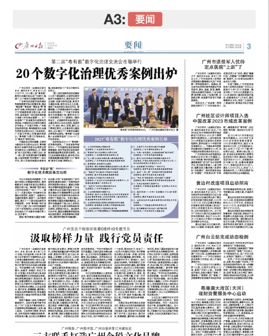 “粤有数”活动被人民日报客户端、新华社客户端、南方报业传媒集团南方+、南方杂志、南方都市报、南财集团21世纪经济报道、羊城晚报、广州日报要闻版和广州市人民政府网、越秀政务等多家中央级、省级和市级媒体及优秀案例获奖单位公众号报道。