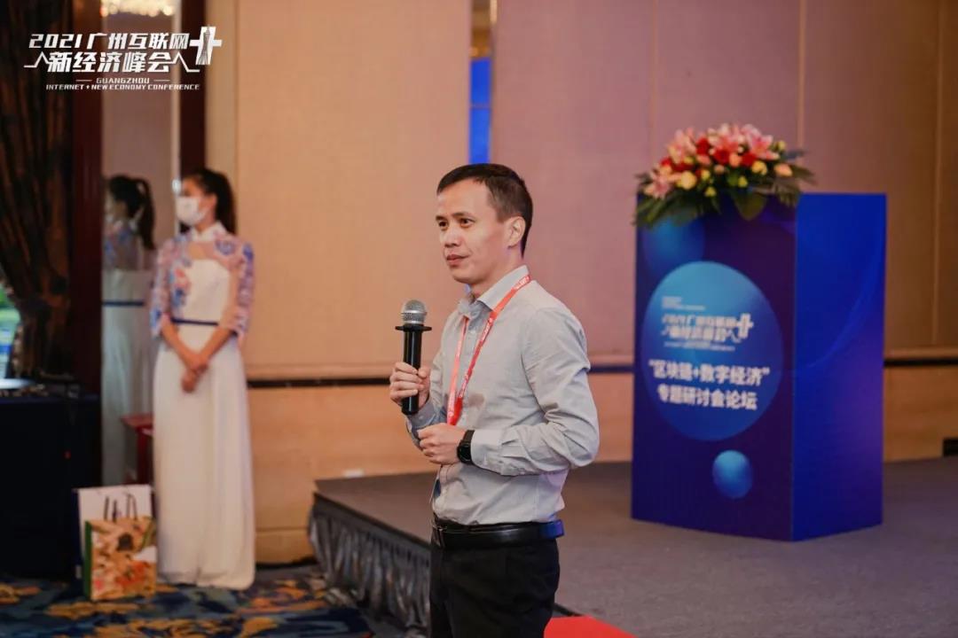 2021年10月20日下午“2021广州互联网+新经济峰会”区块链+数字经济专题论坛在广州香格里拉大酒店莲花厅成功举行,本次论坛由广州互联网协会区块链技术应用专委会、广东省计算机学会区块链专委会举办,中数南粤(广州)信息科技有限公司承办,来自广东省、广州市和其他省市的区块链领域内的知名专家学者、行业组织与企业家代表80多人参加。本次论坛是中共中央政治局2021年10月18日下午就推动我国数字经济健康发展进行第三十四次集体学习后我省举办的首场数字经济专题论坛。主题分享环节邀请了北京航空航天大学计算机学院教授、博士生导师、云南省区块链应用技术重点实验室主任、中国数字经济信息技术协同创新平台副理事长胡凯从区块链技术驱动数字经济发展视角,中国信息通信研究院工业互联网与物联网研究所广州运营中心负责人赵瑞龙从区块链与标识解析视角,微众银行区块链战略合作负责人杨萌从区块链融合隐私计算助力产业数字化视角,广东工业大学计算机学院教授、博导刘文印从基于区块链个人信息保护与利用视角,广州赛宝联睿信息科技有限公司副总工程师、区块链专委会秘书长黄建新从区块链与元宇宙(Metaverse)视角分享区块链如何赋能数字经济。圆桌对话环节由粤港澳大湾区区块链应用推广中心主任蓝云主持,蓝云教授认为,本次论坛在好的时机、好的地点、好的主题和好的嘉宾共同探讨区块链和数字经济融合相关话题,很有意义。