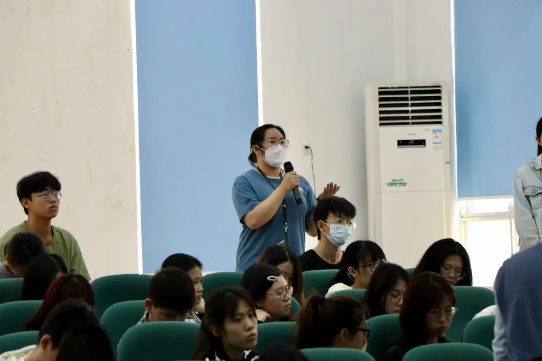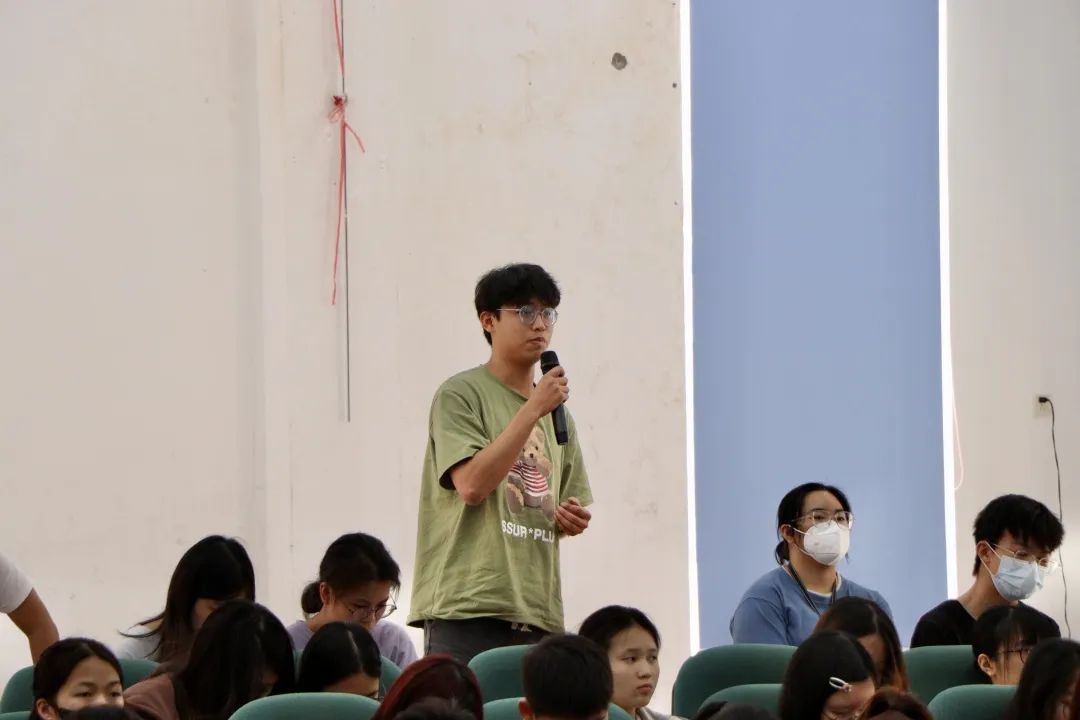 互动环节中,同学们积极地提问,其中不乏有考研、英语四级、难以确定学习目标并为之努力等方面的问题。范伟老师和曾祥乐老师热情地与同学们交流,提供了当学习上遇到困难时该如何应对的一些思路与方法。