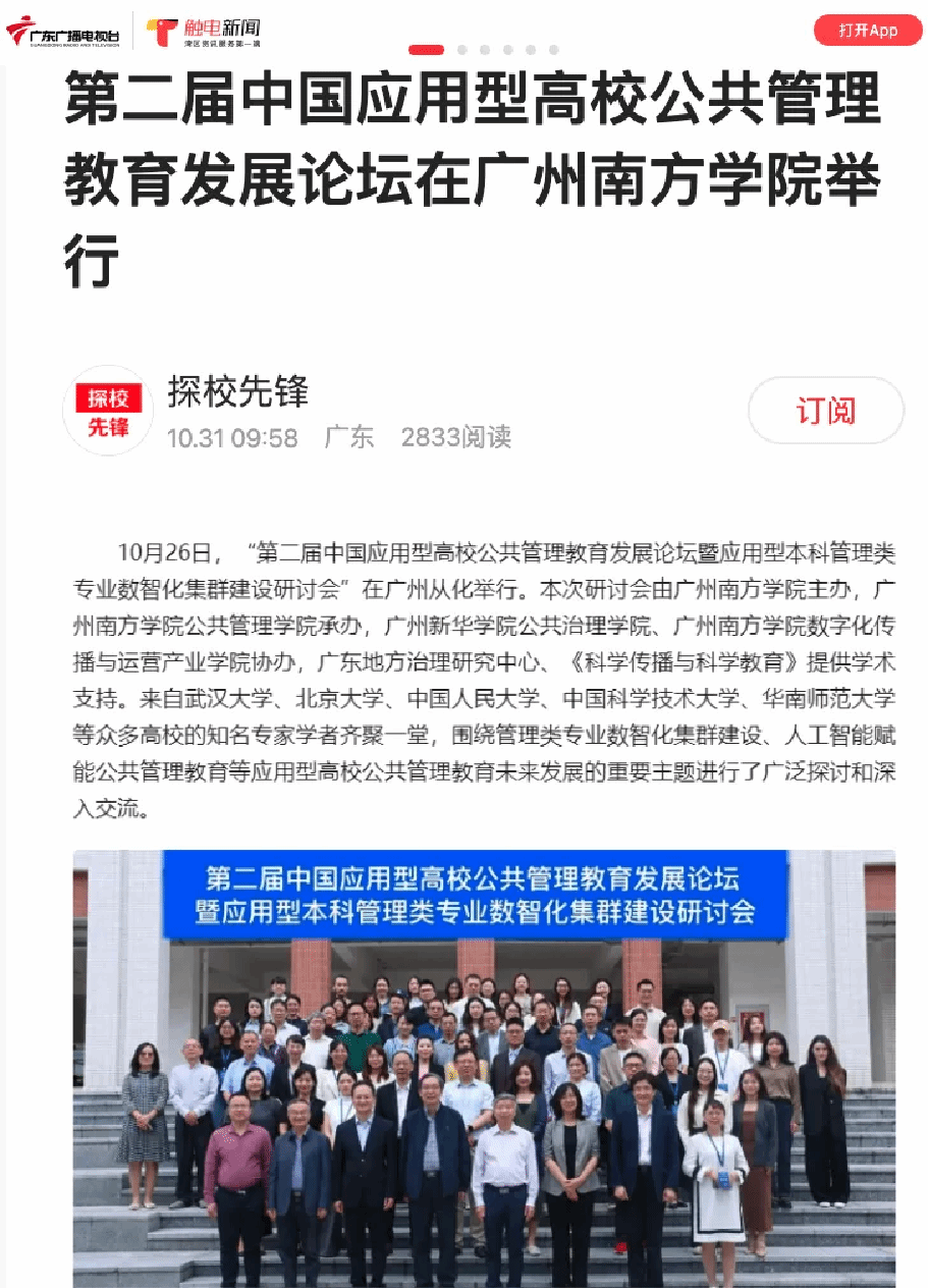 本次论坛的成功举办,不仅深化了“中国应用型高校公共管理教育发展论坛”这一学术交流平台的影响力,也为新时代公共管理专业的建设和发展提供了新思路。本次论坛吸引了专家学者的广泛参与,同时也获得了央广网、中国教育之窗、腾讯教育、凤凰教育、搜狐新闻、触电新闻等各大媒体平台的广泛关注与转载报道。