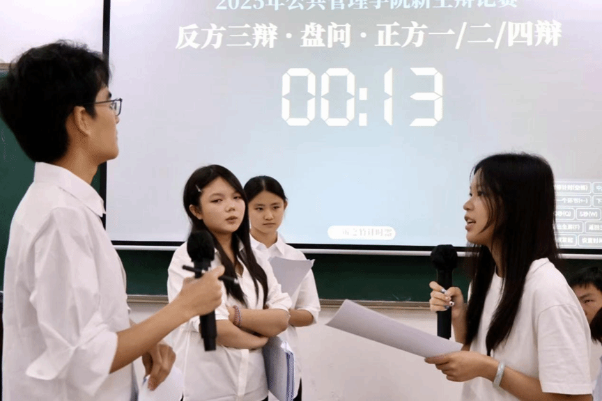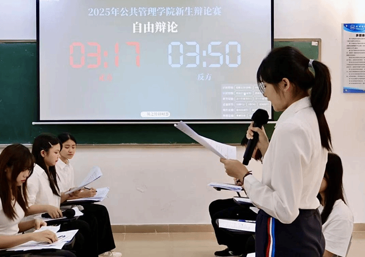 william威廉中文新生辩论赛下半场在教学楼9教205激烈上演。行管2班与公关2班围绕“通才与专才谁更吃得开”展开辩论,正方队伍行管二班持“通才更吃得开”的观点,反方队伍公关2班则持“专才更吃得开”这一观点。