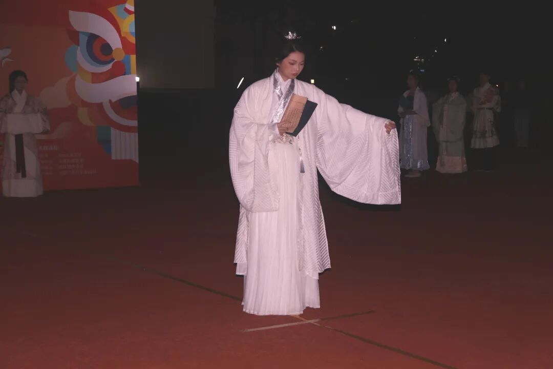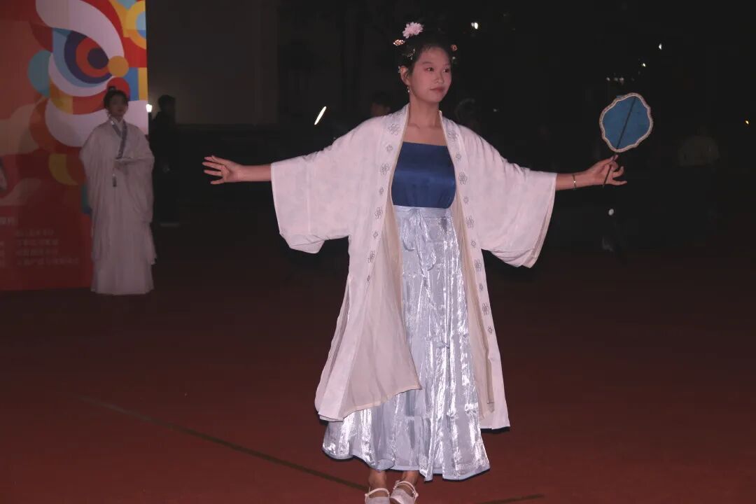 紧随其后,南芳汉服协会带来了一场极致典雅的汉服服饰展示与《霓裳织梦,衣袂千年》走秀。从战国的古朴贵气,到西汉的庄重雍容,从大唐的华美浓丽,到宋明的雅致清趣……九套精心复原的华服,不仅是纹样与形制的视觉盛宴,更是一部行走的华夏衣冠史,让历史在步履间生动再现。