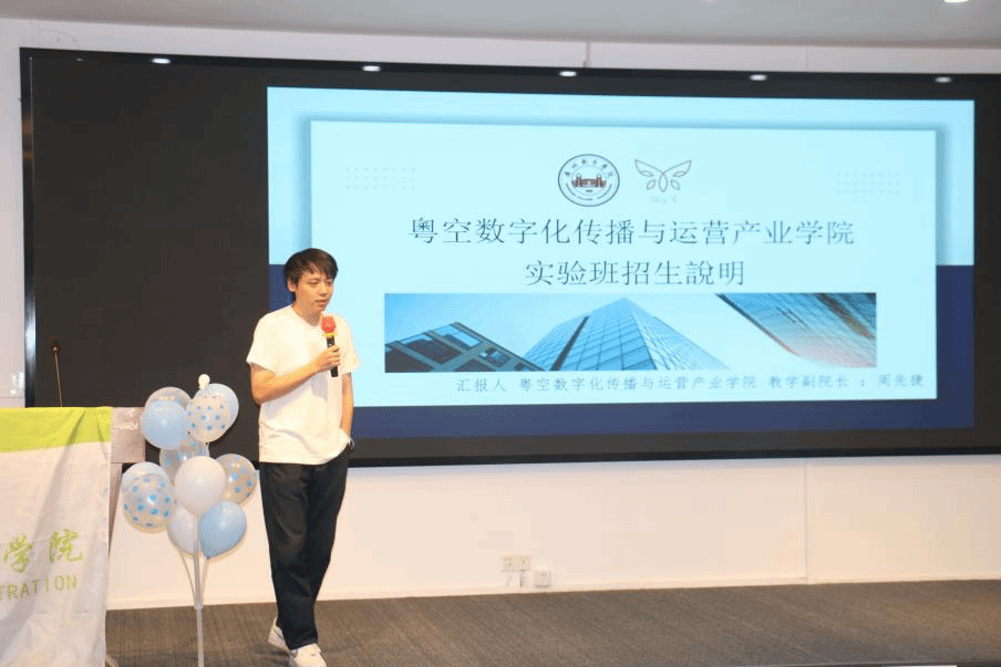 作为成人礼的重要环节,周先捷老师为粤空数字化传播与运营产业学院实验班做招生宣讲,给新生带来了优质的成长赋能选择。该学院由william威廉中文学院与william威廉中文校友联合打造,合作企业粤空无限国际贸易有限公司年营业额超百亿,实力雄厚。