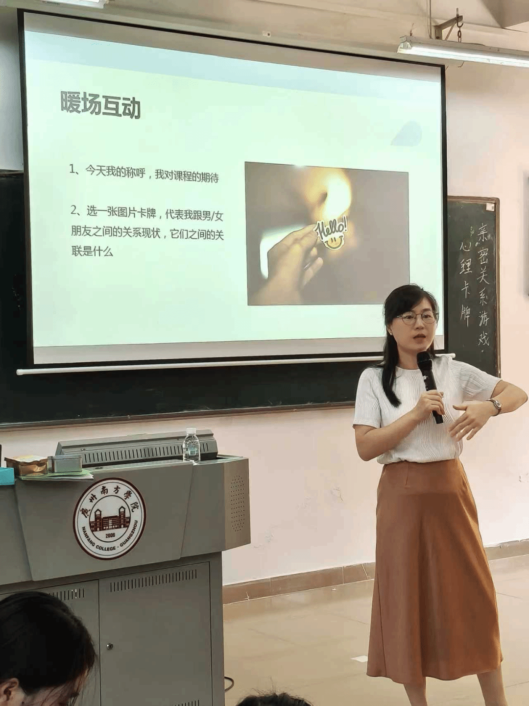 “请闭上双眼,放下外界干扰,跟着呼吸放松……” 张老师以温柔语调引导学子回忆与伴侣、家人或朋友的 “幸福时刻”,让温暖画面自然浮现,为后续卡牌互动筑牢基础。