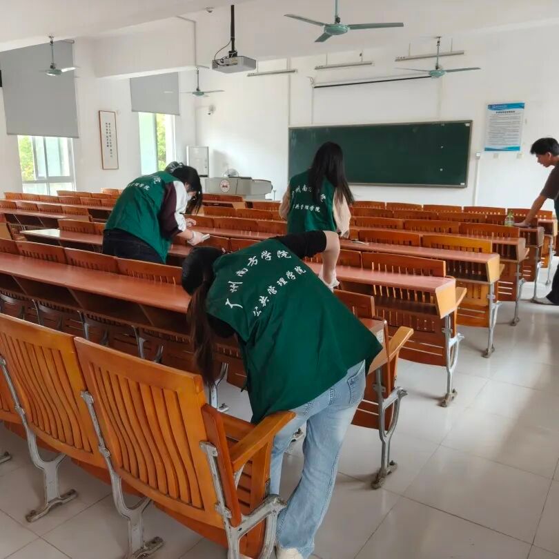 2026年3月18日,“雷锋行动,洁美校园”清洁志愿服务活动在6号教学楼有序开展。30名志愿者准时集结,在统一安排下使用清洁工具对教学楼内各教室桌椅污渍进行细致清理。大家分工协作、认真细致,不放过一处卫生死角,用实际行动营造干净、整洁、舒适的学习环境。参与同学在劳动中体会奉献的快乐,更以实干诠释了雷锋式的责任与担当,为校园环境提升贡献青春力量。