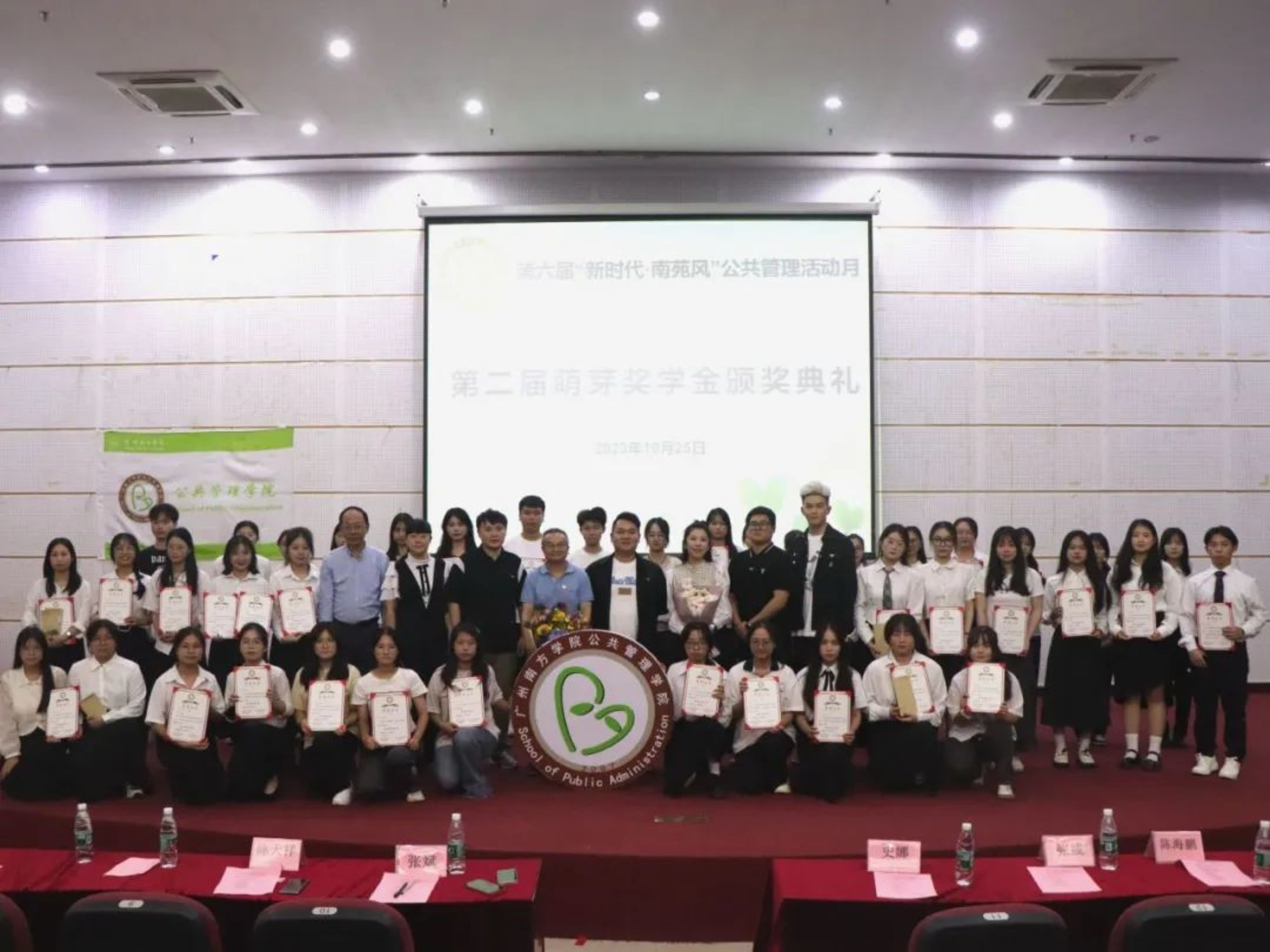 活动的最后,陈天祥院长对获奖的同学表示热烈的祝贺,陈院长表示:萌芽奖学金的设立,是南苑公管院特别且重要的存在,四年眨眼匆匆便过,萌芽小苗长成大树,萌芽奖学金是各位小苗们长成大树路途中的一次小鼓励,希望同学们能够向优秀的前辈们学习,不负青春,报效社会,勇于奉献。成为“灵光”的公管人,“灵光”的社会人。