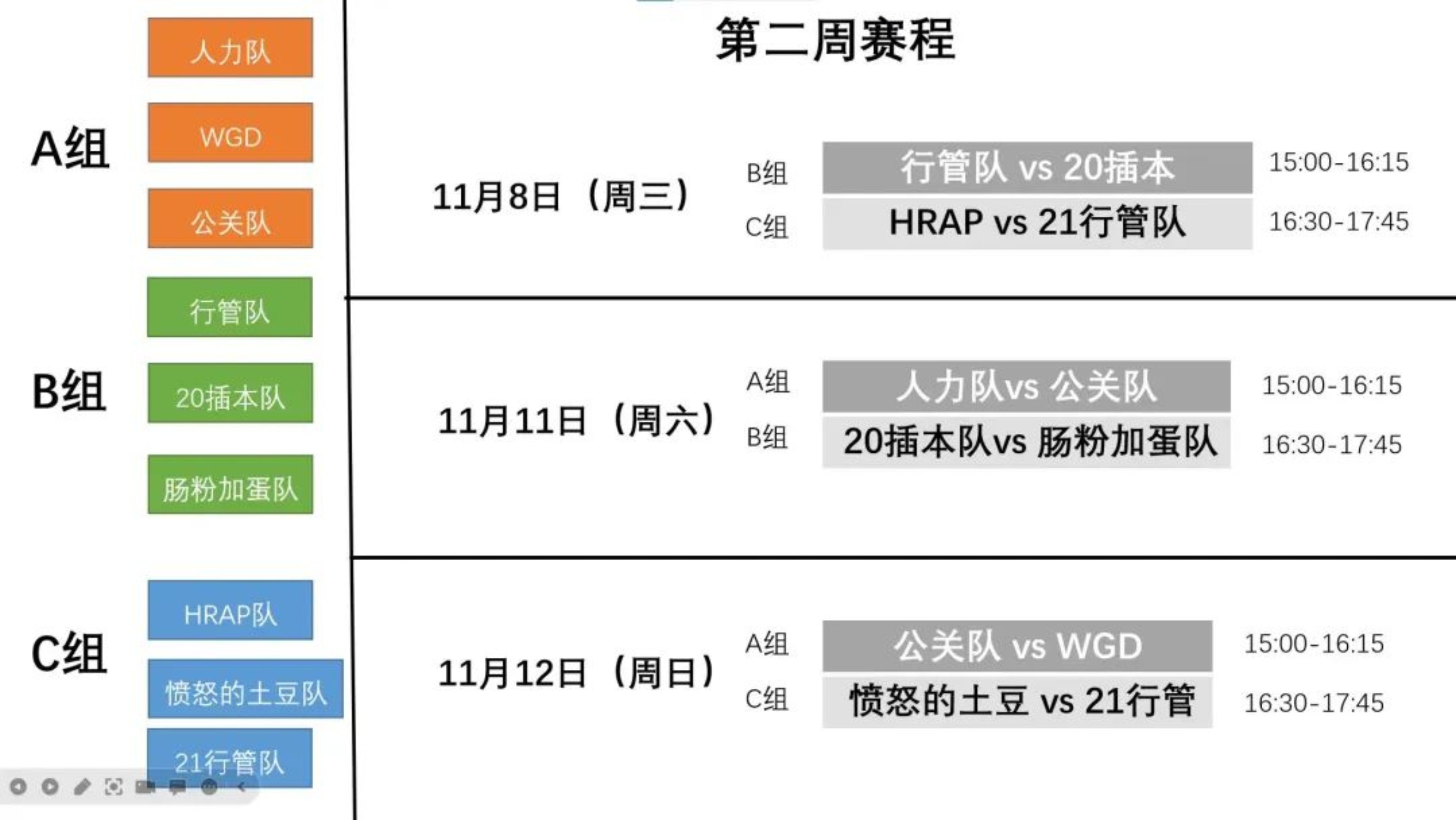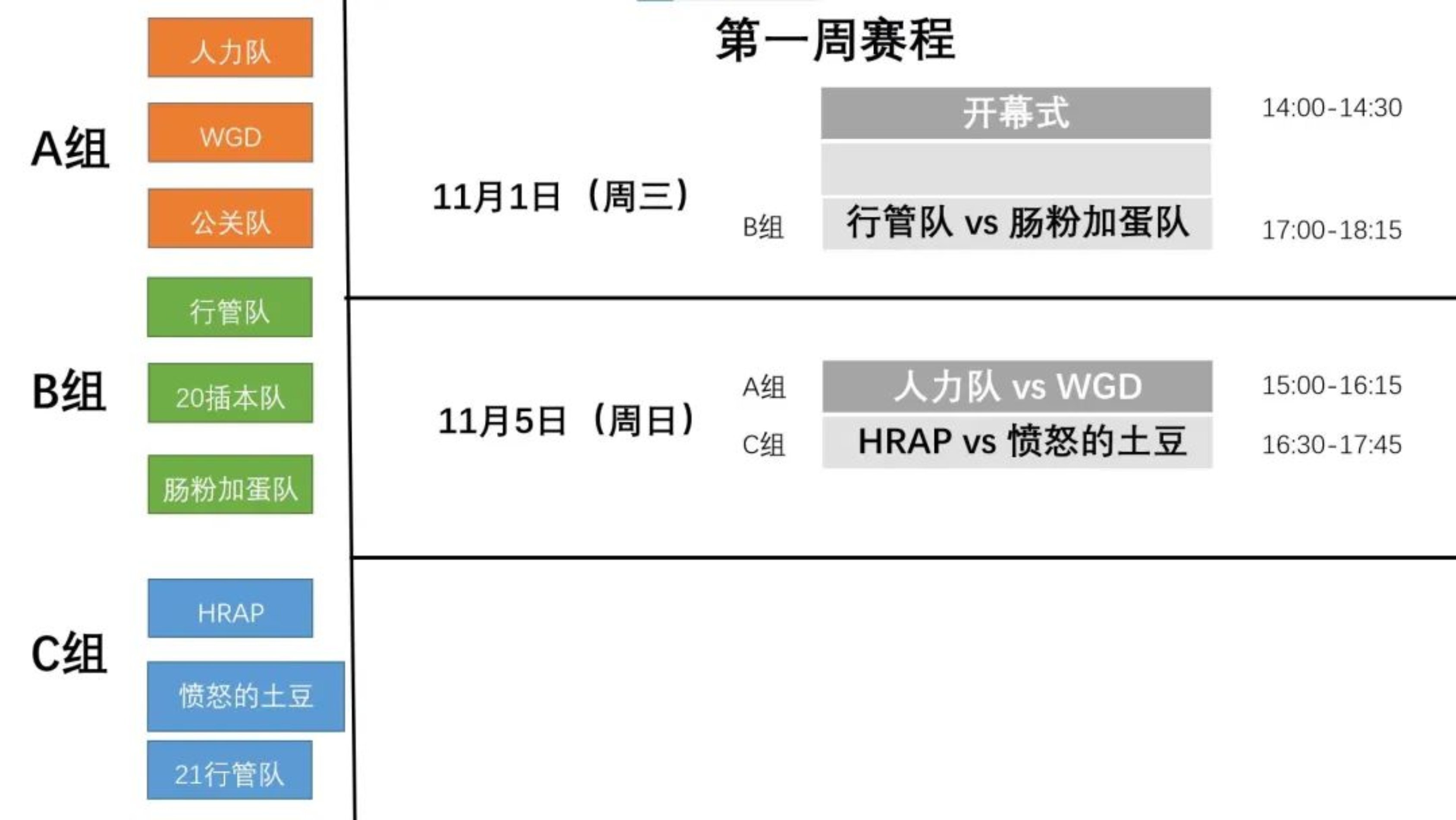 本次“公管人杯”共有十支球队参赛,分别是人力队、WGD、公关队、行管队、肠粉加蛋队、20插本队、HRAP、愤怒的土豆队、21行管队和20人力公关联合。