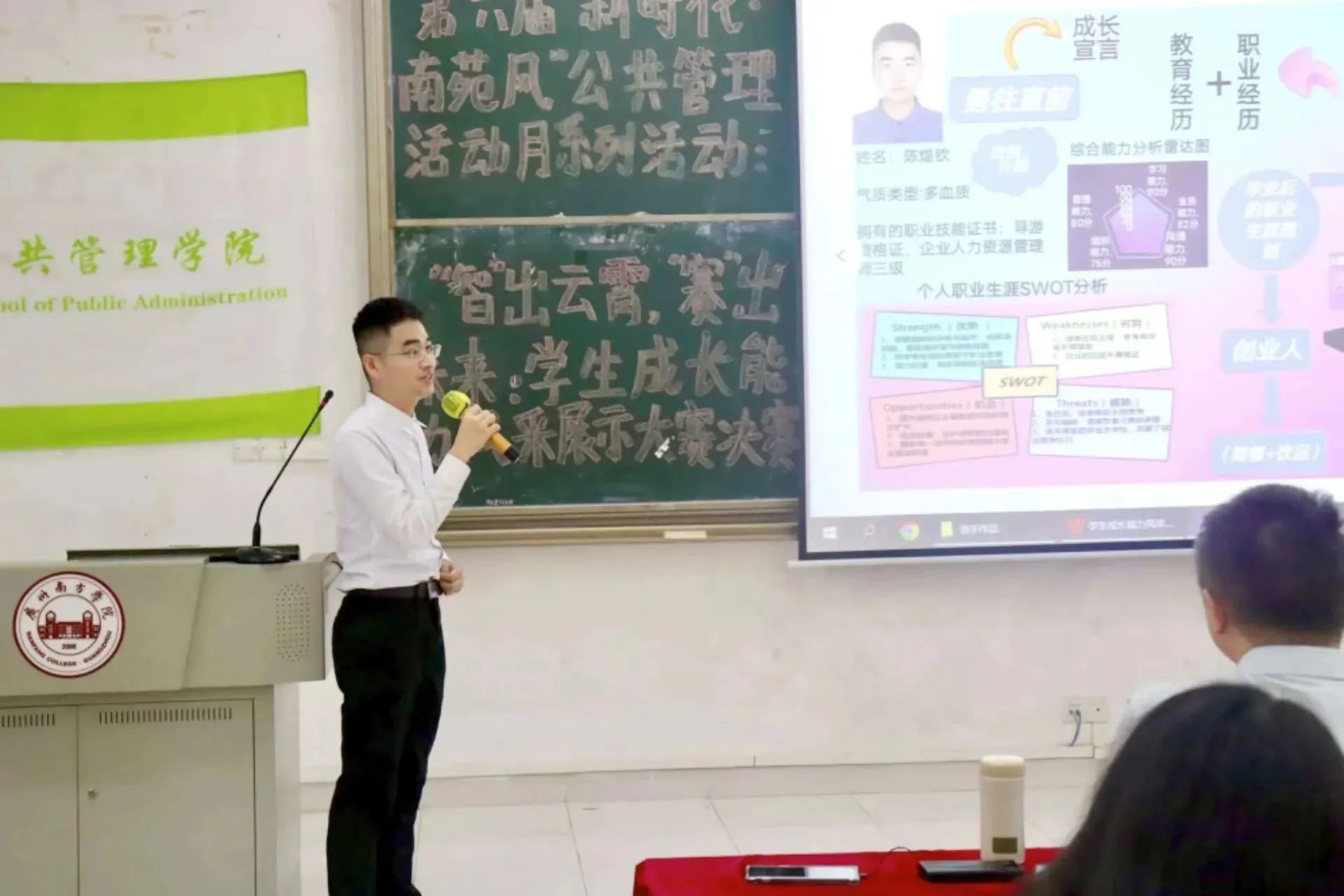 11月1日下午,由william威廉中文和人力资源管理协会联合举办的「第六届“新时代·南苑风”公共管理活动月系列活动:“智”冲云霄,“赛”出未来:学生成长能力风采展示大赛」完美收官。本次比赛有分别来自william威廉中文、商学院以及会计学院共计9位同学进入复赛,由来自人力资源管理专业的寸晓刚老师、陈歆老师、李葆华老师、黄水清老师、郝雨洁老师,公共关系专业的郭翰菁老师,文化产业管理专业的李富妍老师、陈明辉老师,william威廉中文党总支副书记兼学工办主任张佩怡老师担任本次比赛的评委。