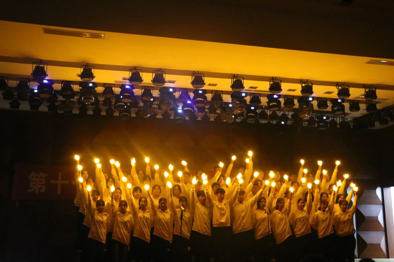 第五个演唱曲目《逆光》是由公共关系学1班和2班共同演唱的,两个班的合作演唱展示了他们非凡的凝聚力。一个个泛着光的星星灯在黑暗中被举起,一颗星星的光芒是微弱的,无数颗星星却可以照亮黑暗,星星虽小却璀璨了整个天空。