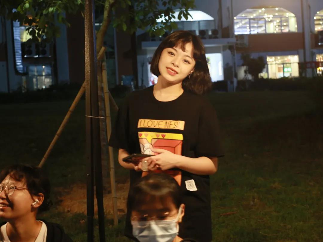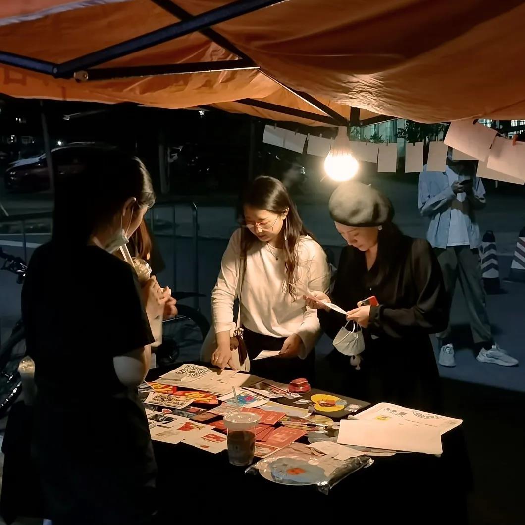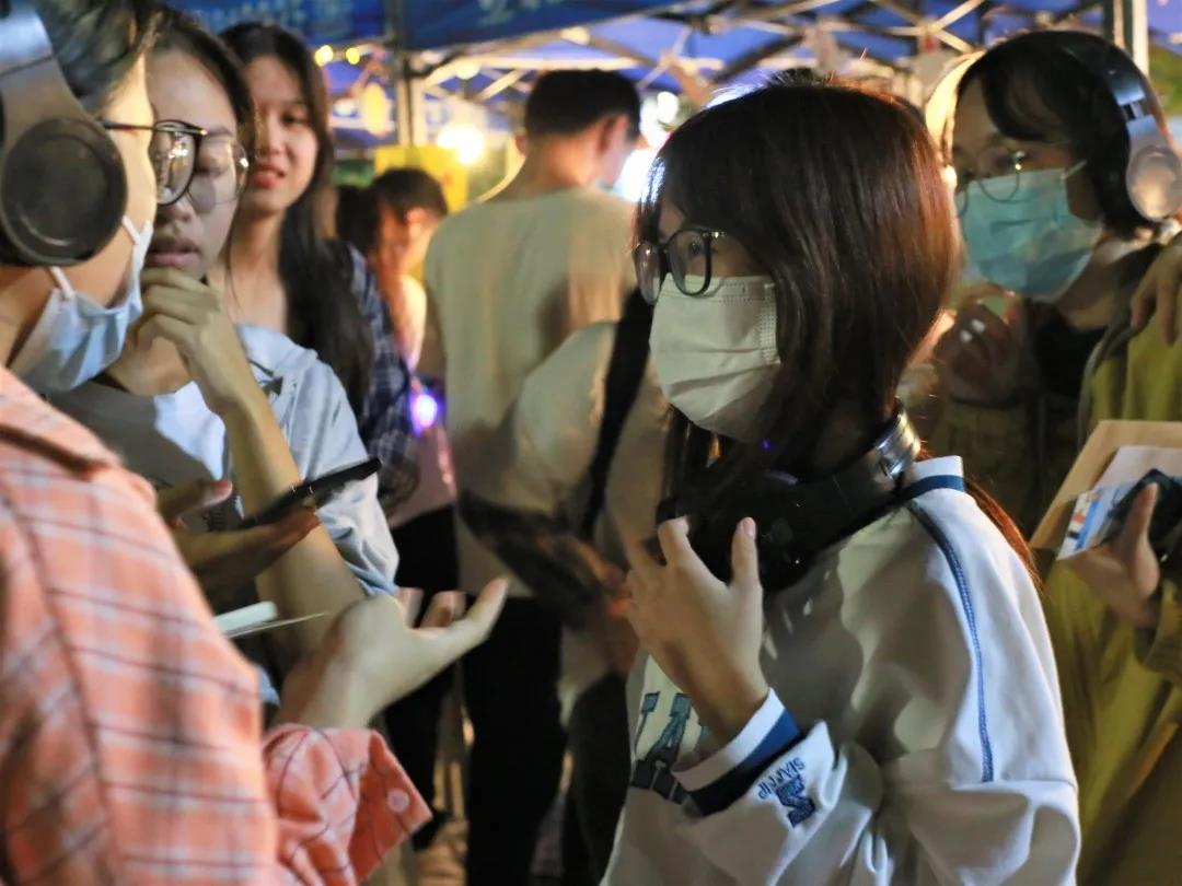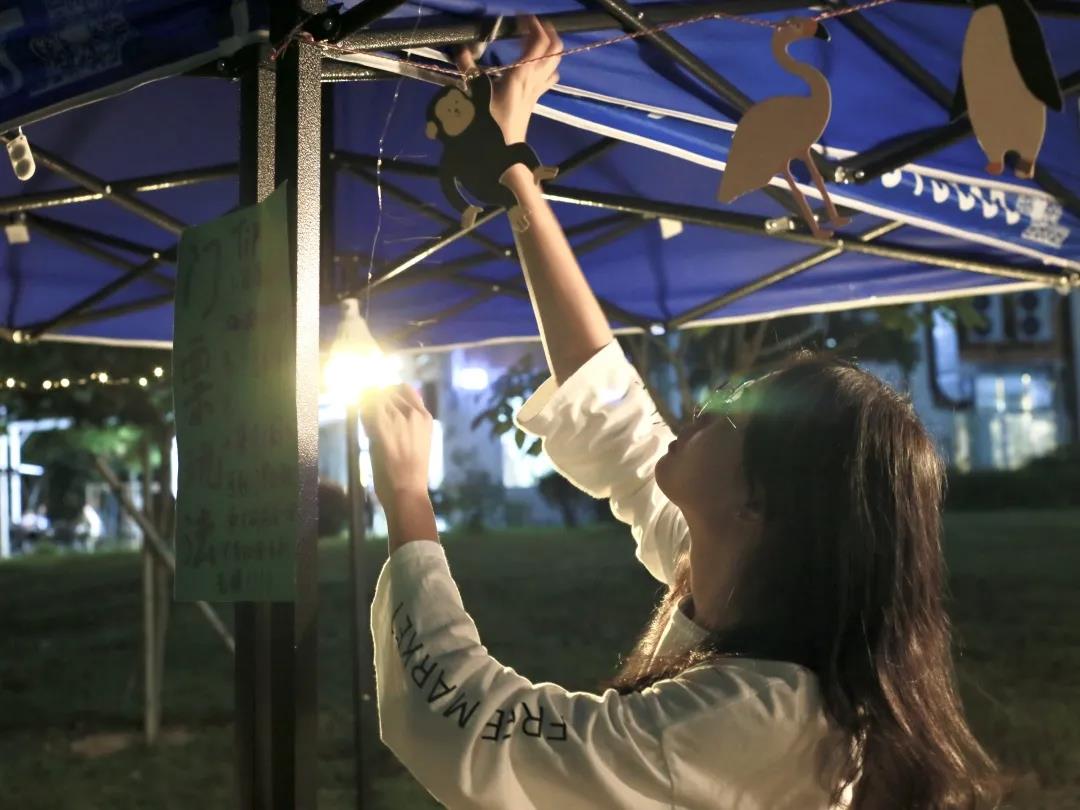 夜色渐浓,伴着凉爽的秋风,活动摊位的灯逐一亮起,丰富多样的游戏和精美的文创产品吸引了许多同学前来参与,活跃的游戏氛围让东饭周边热闹了起来。