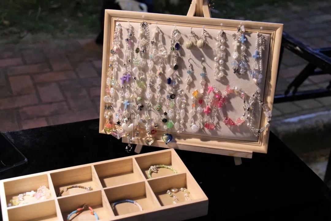 在文管学子的专属摊位上摆着许多精美文创产品,不仅展示了文管人的丰富学习生活,也让其他专业学子加深了对文管专业的了解。