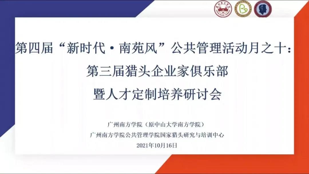 第四届“新时代·南苑风”公共管理活动月之十:第三届猎头企业家俱乐部暨人才定制培养研讨会