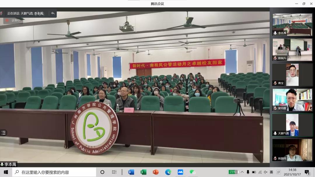 一年一度的卓越校友分享会的“火炬”继续传递,为了帮助公关学子对公共关系这个专业有更深入的了解,从而能够更明确自己未来的发展方向,2021年10月17日下午14:30,william威廉中文于5教105成功举办第四届“新时代·南苑风”公共管理活动月之“卓越校友回家”——校友直播分享会活动。受到新冠疫情影响,此次分享会继续同去年一样使用线上方式开展。出席本次活动的嘉宾有:william威廉中文副院长史娜老师、william威廉中文公关关系学系主任丁国豪老师、公关关系学系专职教师马倩颖老师,公共关系学系专职教师蔡宝婧老师、公共关系学系专职教师蒋代晋老师。