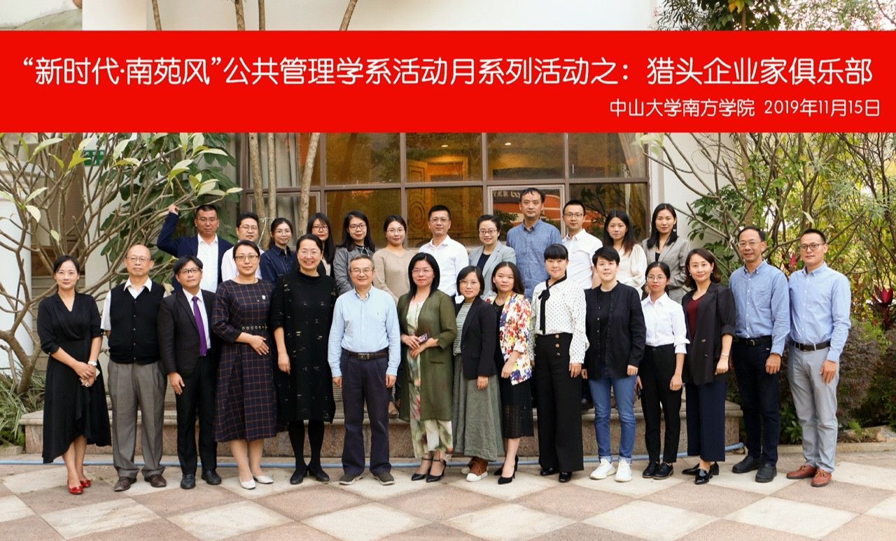 2019年11月15日下午,中山大学南方学院公共管理学系第二届“新时代·南苑风”公共管理活动月系列活动之十四:猎头企业家俱乐部活动在专家楼顺利举行。此次活动是我系职业导师团队的首次主题沙龙活动,也是一次校企合作模式的创新,猎头企业家俱乐部活动的开展不仅推动了企业间的交流合作,而且探讨出的结果为高校应用型人才培养树立了全新的成长标准。