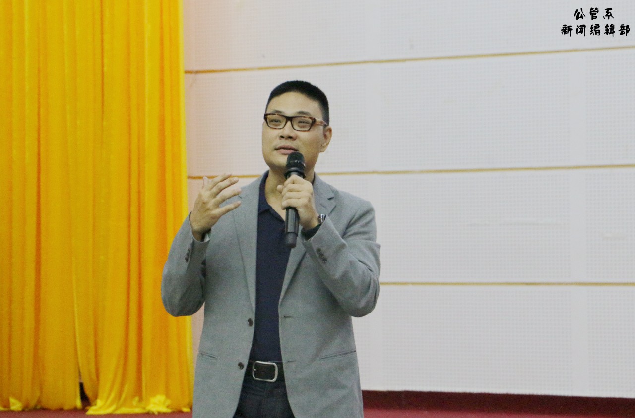 陈天祥主任为我们致开场辞。陈主任首先简单地向大家介绍了“管理之道”学生大讲堂暨案例大赛这个品牌活动的历史。今年,公共管理学系已经是第十一年举行“管理之道”学生大讲堂暨案例大赛,陈主任肯定了这个比赛确实符合应用型本科高校的建设需要,能鼓励学生积极投身公共管理实践,并提高其发现问题、分析问题、解决问题的能力。随后,陈主任肯定了同学们这几个月以来的调研成果并预祝今年的“公共关怀”学生调研成果汇报会及“管理之道”学生大讲堂暨案例大赛决赛圆满成功,也预祝同学们再创佳绩,收获满满!
