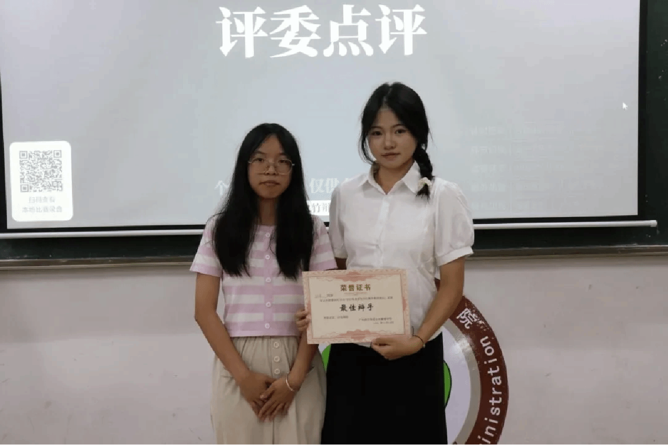 最终在评委们的深思熟虑下决定,获胜的的队伍是文管二班,反方一辩黄宝枝同学获得了本场比赛的最佳辩手。