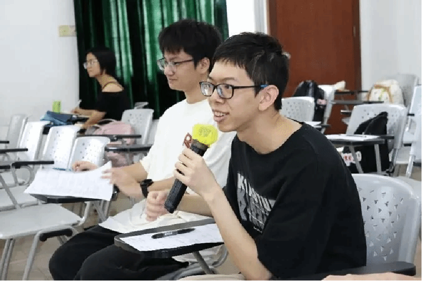 2024年10月19日星期六14:30分,新生辩论赛初赛上半区第二场比赛在九教202举行。出席本次比赛的有 22级公管院纵横副队吴嘉鑫,23级会计院容川副队郑光智、容川教练邓国涛 。