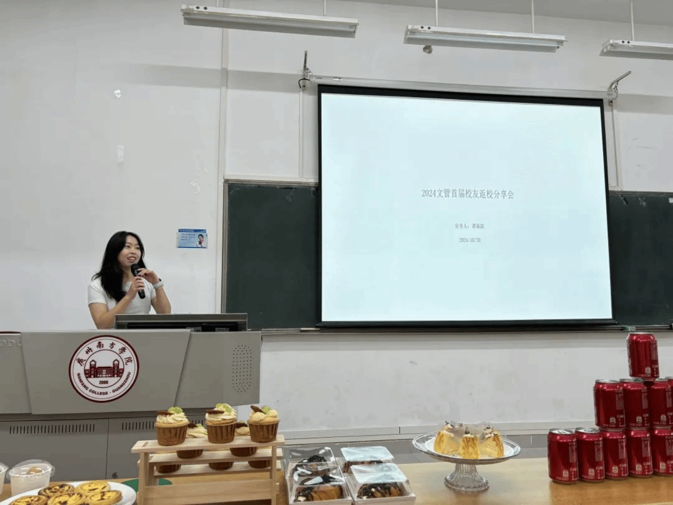 2024年10月20日下午,首届“文管回娘家,回家聚聚”文化产业管理专业校友返校活动在6教205隆重举行。校友们与在校师生相聚南苑,共享欢笑与感动。出席此次活动的嘉宾有:文化产业管理系主任潘晓蝶老师、周先捷老师、张秀蓉老师、林诗文老师以及各位返校校友。