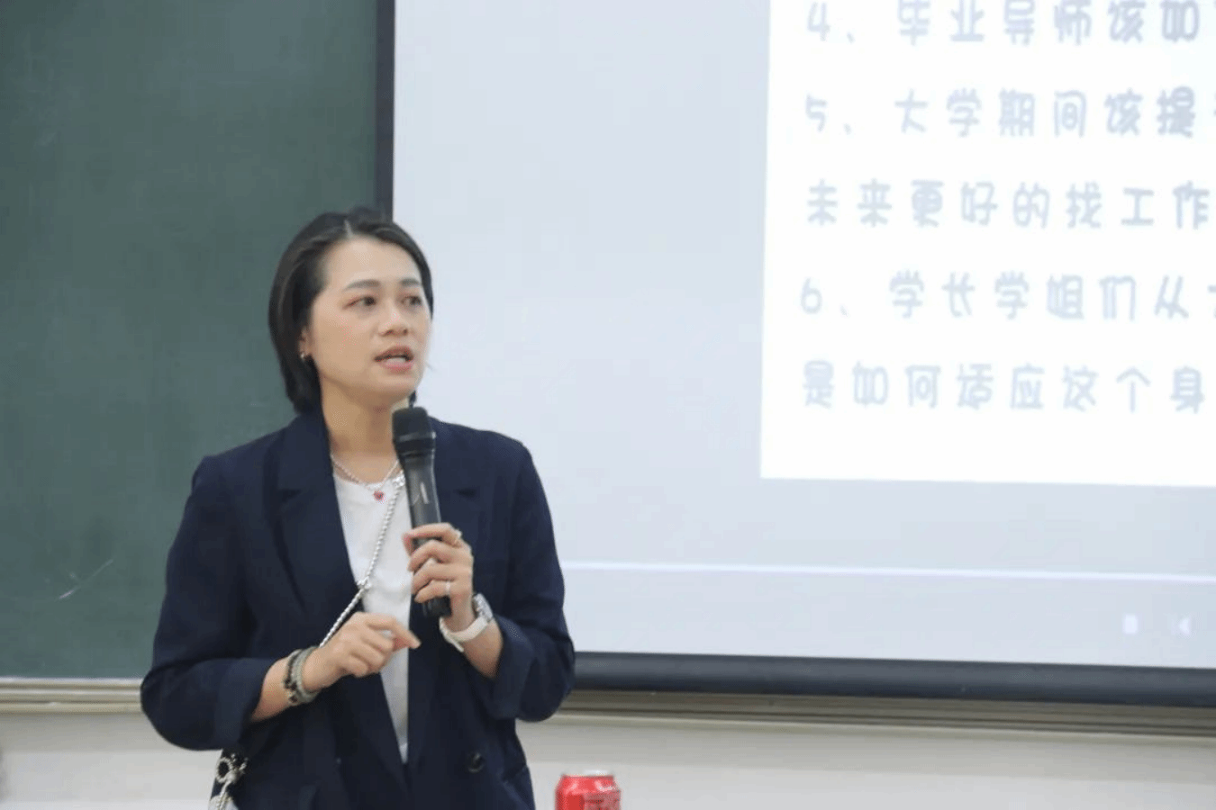 张秀蓉老师作为本次活动的发起人和策划指导老师,表示看到各位校友开开心心地回到母校相聚,感到无比欣慰,希望在座的同学能与学姐学长们广泛深入地交流,明确未来职业和努力的方向,并付诸具体行动。