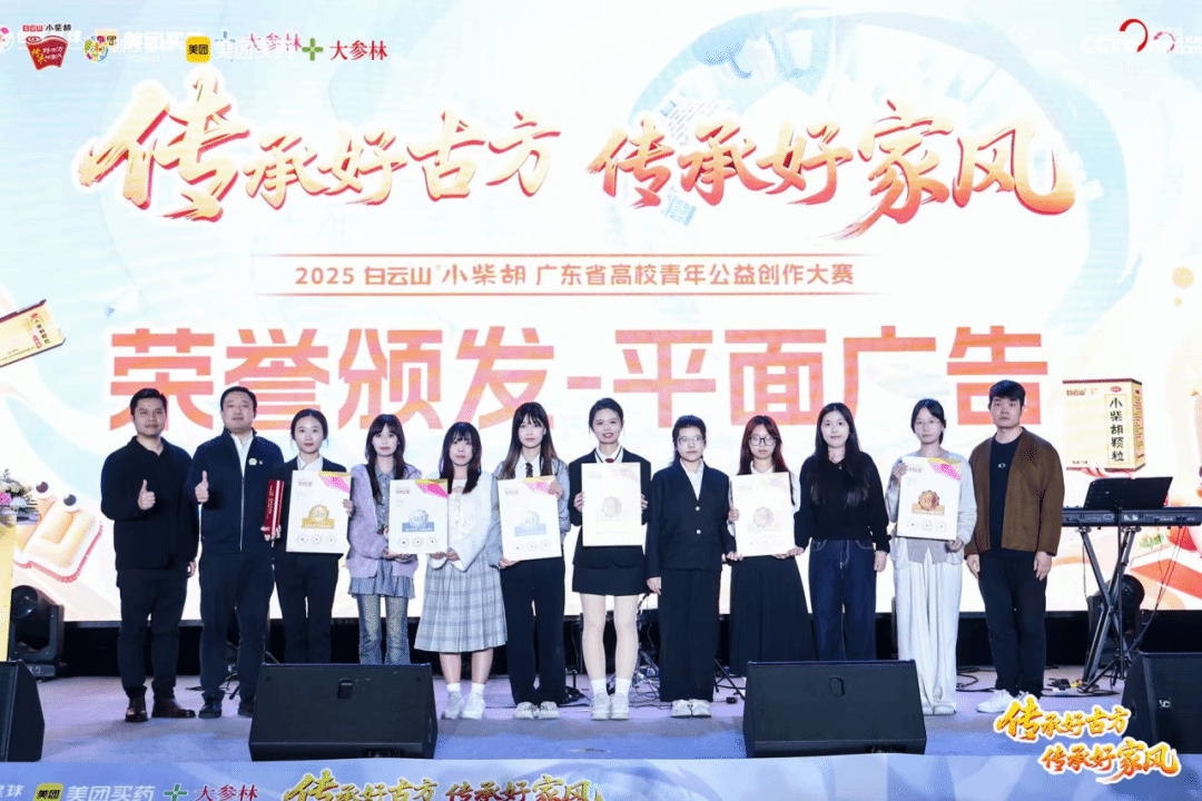 颁奖盛典现场灯光璀璨,团队成员从容登台,接过证书与奖杯。聚光灯下,她们并肩而立,笑意明朗,在热烈掌声中,让青年创意与中医药文化在舞台上温柔相遇,留下了属于青春的荣耀时刻。