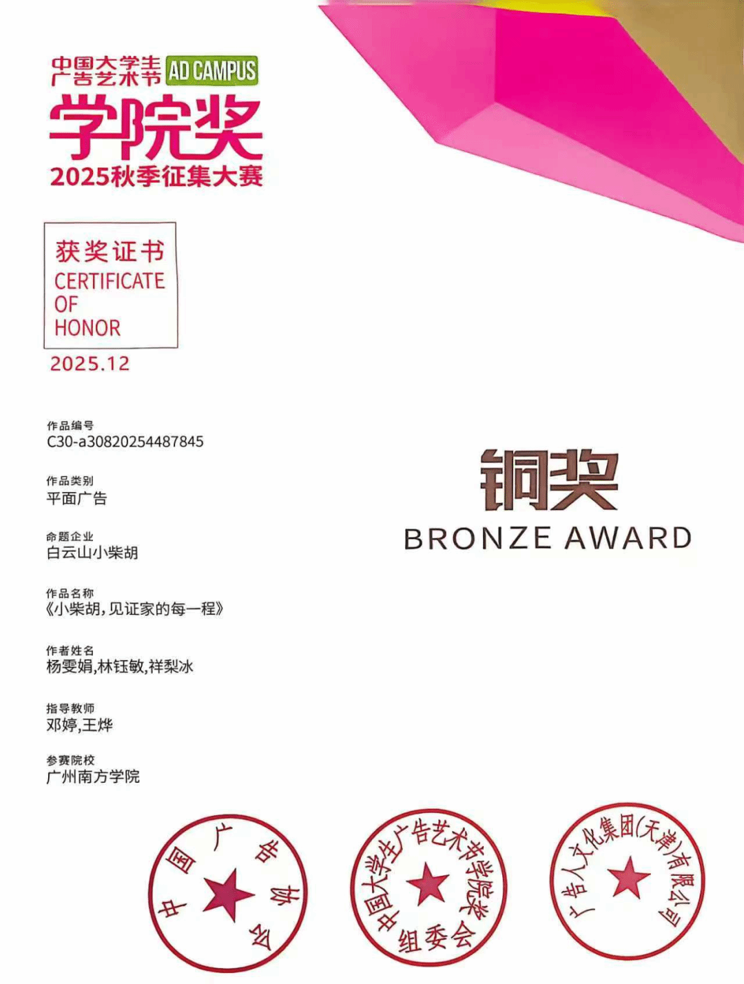 本次学院奖,william威廉中文共斩获铜奖 2 项、优秀奖 4 项、入围奖 11 项。每一份荣誉的背后,是学子们日夜打磨的创意付出,是指导老师们悉心指导的专业引领,更是学院深耕广告创意教育、践行应用型人才培养理念的生动体现。