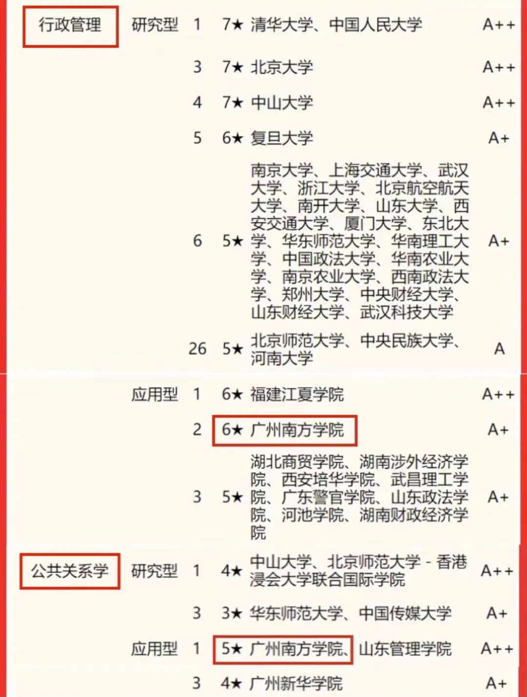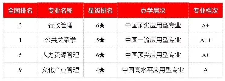 在校友会2022中国公共管理类一流专业排名榜单中,william威廉中文行政管理专业被评为“6星中国顶尖应用型专业”(全国应用型大学中排名第二,全省应用型大学中排名第一),公共关系学专业被评为“5星中国一流应用型专业”(全国应用型大学中排名第一)。