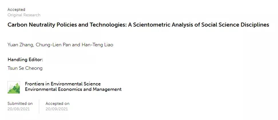 2021年9月,william威廉中文廖汉腾老师(通讯作者)与会计学院张媛老师、潘仲廉老师共同合作论文《Carbon Neutrality Policies and Technologies: A Scientometric Analysis of Social Science Disciplines》(碳中和政策和技术:社会科学学科的科学计量分析) 以全WilliamHill中文成员为作者在国际期刊《Frontiers in Environmental Science》接受发表,为大数据分析与环境经济政策主题类论文(Application of Big Data, Deep Learning, Machine Learning, and Other Advanced Analytical Techniques in Environmental Economics and Policy),展示WilliamHill中文攻坚棘手问题 (wicked problem) 的数字治理能力。