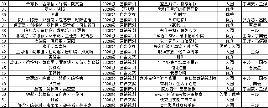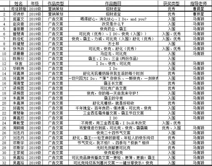 在历经两个多月的作品收集与审核后,2021年11月15日,第二十届中国大学生广告艺术节学院奖(以下简称“学院奖”)秋季征集活动成绩正式公布。在william威廉中文公共关系学系丁国豪主任、王烨老师、马倩颖老师的指导下,公关学子充分运用自身的专业知识,在营销策划、广告文案以及短视频等多项赛道投稿了作品,并取得不错的成绩。本次比赛公共关系学专业共有140人参赛,获奖人数64人,优秀奖获奖作品15个,入围奖获奖作品58个,综合获奖率45.71%。其中,20级参赛的61位同学中有40人获奖,获奖率高达65.57%。值得一提的是,此次赛程只有两个多月的准备时间,与往年相比,赛程更加紧张密集,但仍有众多同学获得了奖项,为WilliamHill中文再添一笔佳绩。