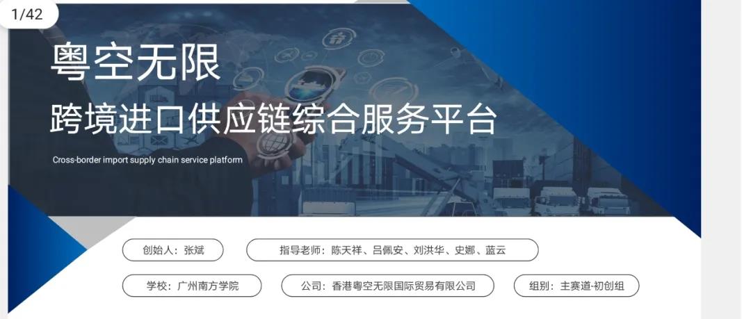 “粤空无限供应链——国内领先的进出口商品跨境供应链服务商”项目志在打造国内领先的跨境供应链综合服务平台,粤空专注于母婴保健,美妆护肤两大类目产品进口供应链服务,提供集品牌服务、平台服务、供应链金融服务、跨境仓储物流服务等于一体的全链路的全球跨境商品综合服务。其中,粤空构建的全程跨境进口供应链服务已形成上中下游的交易闭环,可以帮助品牌方与进口零售渠道高效对接,实现了交易流程的高效简化与资源互通。参赛项目主创人张斌是学院2016届毕业生,团队的核心成员刘俊宇、张威也为我院毕业生,大学期间就立志创业的他们,毕业后一直关注母校创新创业工作的发展,真正做到了“以创带创,循环推动”。