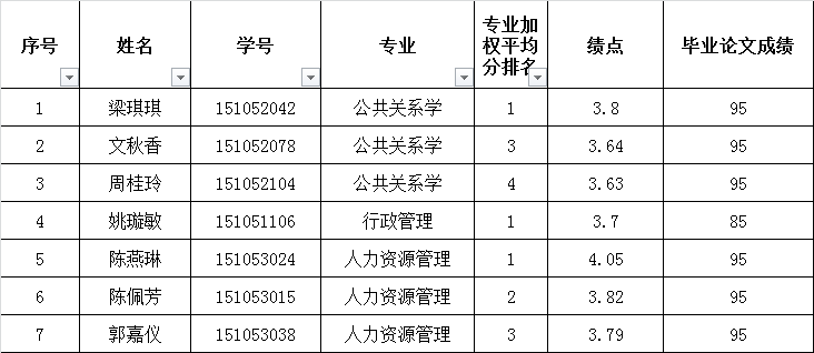 根据学校《学生工作部关于开展2019届优秀毕业生奖评定工作的通知》(学工〔2019〕15号)的文件精神与要求,经同学自愿提出书面申请,我系奖励评定工作小组综合评选条件与要求考虑,现拟推荐梁琪琪等7名同学参选中山大学南方学院2019届优秀毕业生评定。相关推荐人员情况如下:
