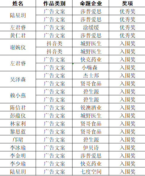 磨炼是最好的“成长礼”,实践是最好的“墩苗田”。学院奖举办至今,其影响已经从高校延伸至广告行业,成为行业遴选人才,企业获取杰出创意的重要途径。希望其他公关学子也能以更大的热情投入到此类活动中,不仅能拥有一个展示自己能力的平台,还可以为我校公共关系学专业争光。
