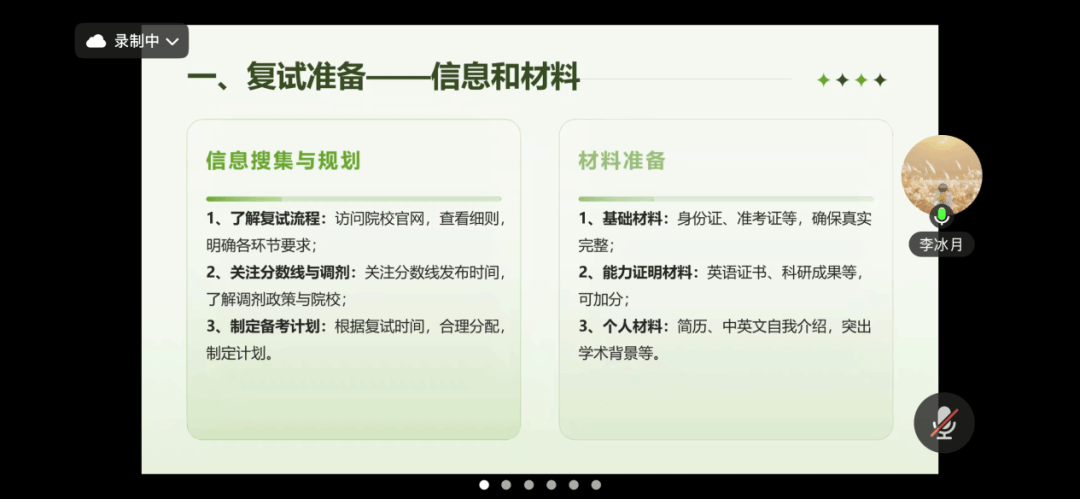 文化产业管理专业由李富妍老师主讲,李老师重点围绕复试备战策略与调剂选择进行系统讲解。在复试准备方面,她指出学术简历应突出科研经历与论文成果,与就业简历形成区分;确认上线后应及时通过邮件联系意向导师,介绍个人情况并研读导师专著,提前建立学术连接。面试环节需准备“报考动机”“研究生规划”等高频问题,并针对性训练英语口语听力。在调剂方面,她提醒考生谨慎填报平行志愿,留意院校志愿锁定时间,主动联系目标院校招生办及意向导师,关注集中报考院校动态,提高调剂成功率。