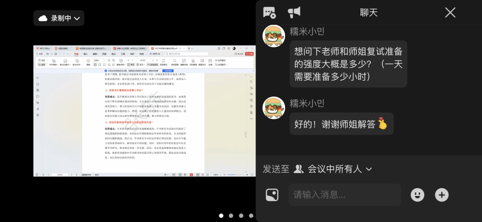 人力资源管理专业由系主任杨秀平老师主持,李冰月老师主讲,研究生林静参与分享。李老师围绕复试全流程、备考要点、民办院校学生常见误区及核心竞争力提升等内容展开讲解,涵盖专业知识、综合素质、外语能力三大考核板块。林静结合自身成功上岸经验,详细拆解复试时间轴、考核规则与应试技巧,并分享AI模拟面试方法及实用备考资料。互动环节师生积极交流,现场反响热烈。