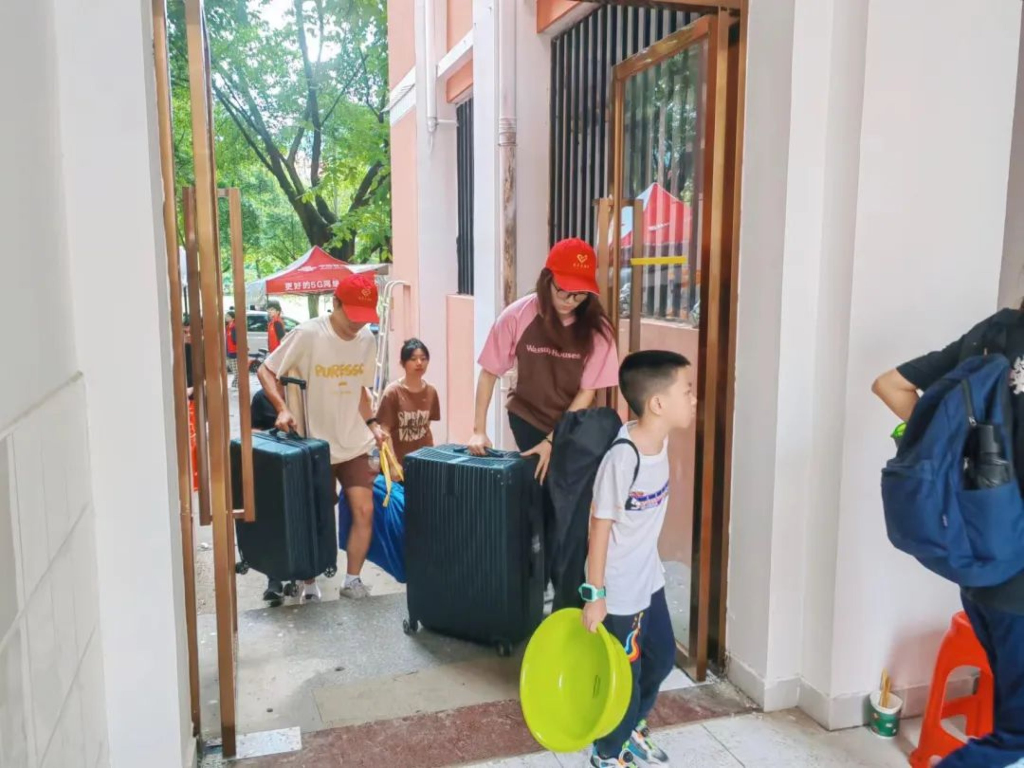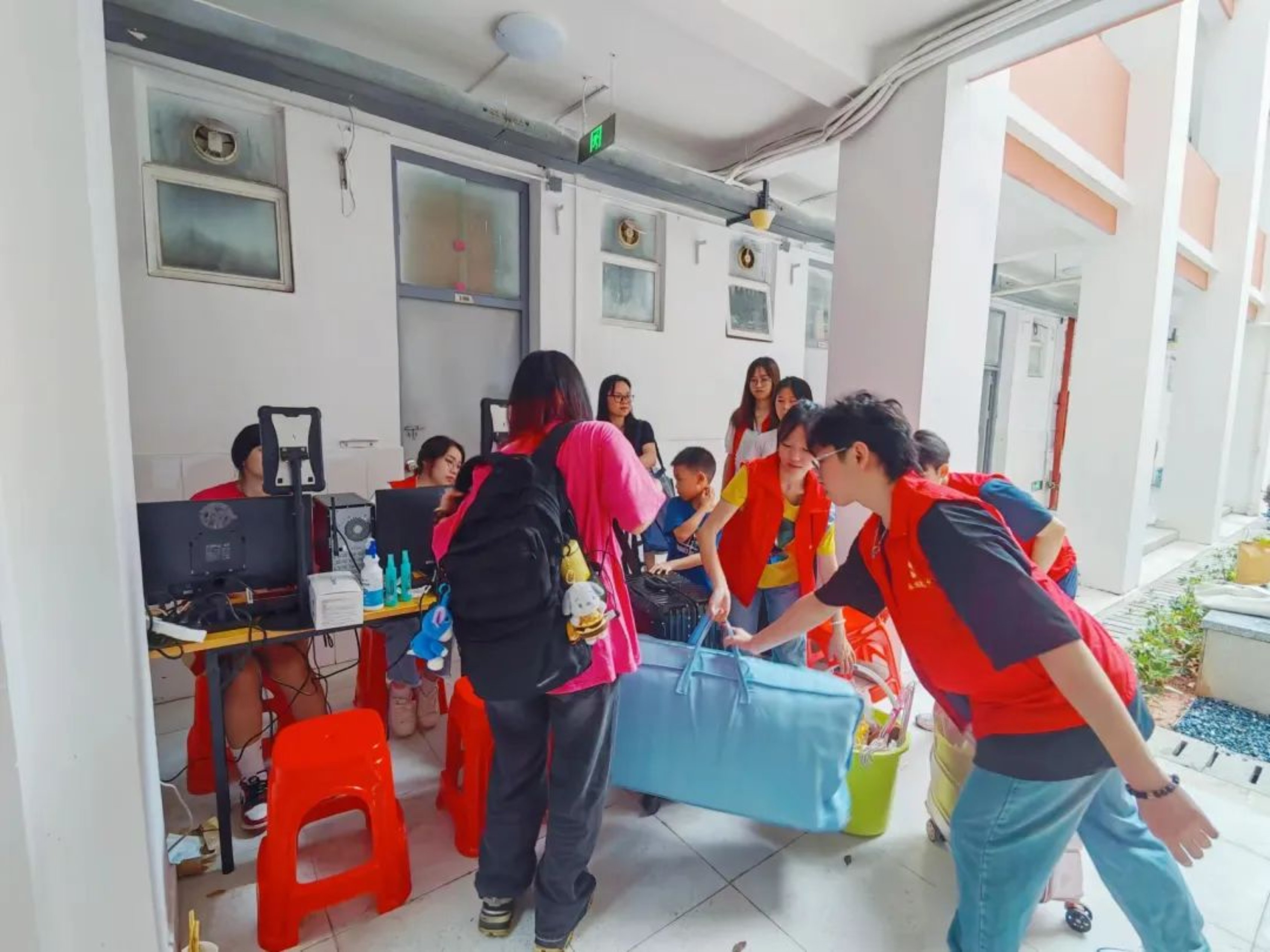 随着新生的到来,志愿者们开始了紧张而有序的迎新工作。在新生宿舍报到处,志愿者们身着志愿者服,用满满的热情迎接萌新们的到来,以耐心和关怀的态度热心解答新生的困惑。从清晨到日暮,被汗浸透的志愿马甲也挡不住志愿者们的热情,他们帮助新生搬运行李、入住登记,以实际行动展现了公管学子的责任与担当。