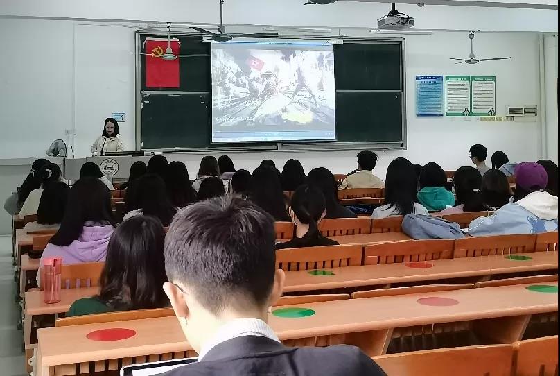 教师党员张佩怡同志先以黄继光战士舍身堵枪口的壮烈事迹为引,阐述了党的性质,呼吁各位发展对象“牢记党员身份,争做合格党员”。而后,张佩怡同志辅以短片《红星何以照耀中国》,讲述了中国早期共产主义者探索救国道路的历程。短片结束,张佩怡同志拓展了“两学一做”和“三严三实”的学习教育,紧接着向在座发展对象详细叙述了新时代党员的八项义务和八项权利,帮助在座发展对象明悉党员义务和党员权利二者各自的内涵及相关关系、消除对义务和权利的错误片面认识、认清党员义务和权利的辩证关系,以此来提高在座发展对象的思想觉悟,规范其行为准则,从而保持党员队伍的先进性,促进党的事业发展。