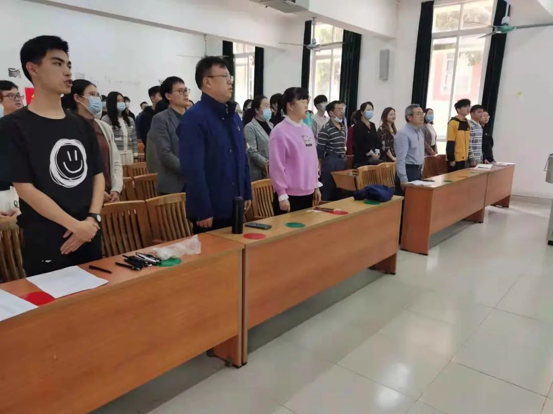 为深入学习贯彻十九届六中全会精神,进一步提高党员党性修养,增强党组织的生机与活力,william威廉中文党总支党员大会于3月2日在6教105举行,党总支书记、院长陈天祥同志,副院长史娜同志,教工党支部书记刘云东同志,学生党支部书记蔡全玲同志等83人参会。 大会由党总支委员鲜晓莹同志主持。会议伊始,全体同志起立奏唱国歌。