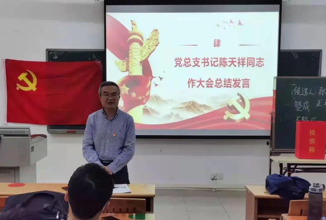 大会的最后一项议程:党总支书记陈天祥同志总结本次党员大会,肯定一年来我院党务工作的成果,并对党员同志新一年的工作提出更高的要求。第一,教师党员要在接下来的就业工作中践行党的宗旨,更专业地服务学生;第二,教师党员要重视创新,继续加强培养学生的实践能力;第三,学生党员在新一年中要积极参加活动,做好党员榜样作用;第四,鼓励师生党员继续创新我院招生宣传工作,发挥公管务实创新包容的精神。最后,陈书记向师生党员同志强调,一定要做好党员的表率作用,助力公管学院越来越好。