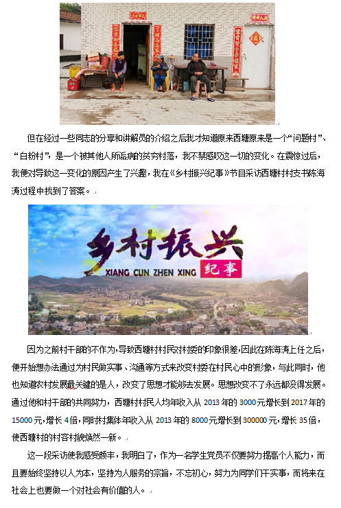 经过党务助理前期周密的组织策划以及与接待方进行多次沟通,当天上午我系学生党员和发展对象从学校坐大巴车前往活动目的地——西塘村。在活动开始,由我系人力支部书记卢诗杰老师进行主持,我系党总支副书记陈利斌老师做党日活动讲话,对活动进行介绍并对在场同志寄语,接着三名学生党员代表对西塘村印象做了个人分享。