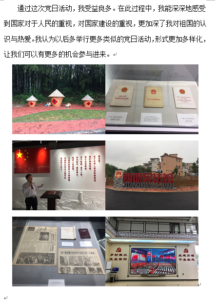 此次党日活动的参观学习,各位同志感受到了西塘村的蝶变,了解乡村振兴背景下特色小镇的发展战略,更加深入地学习了宪法并将宪法精神带到自己的工作生活中去,希望将来能用自己的知识能力,对家乡、对社会、对国家有所担当,有所贡献,真正做到“不忘初心,牢记使命”,为建设社会主义现代化强国而努力奋斗!