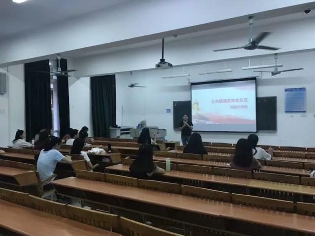 2018年6月24日晚,公共管理学系党总支部在6教105举行党内组织活动,这次活动的内容是党员享会。