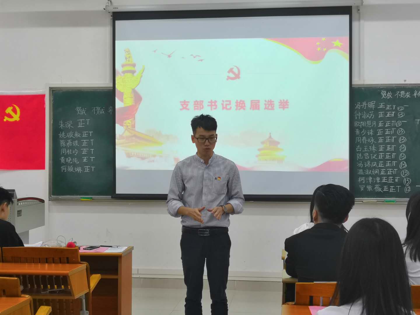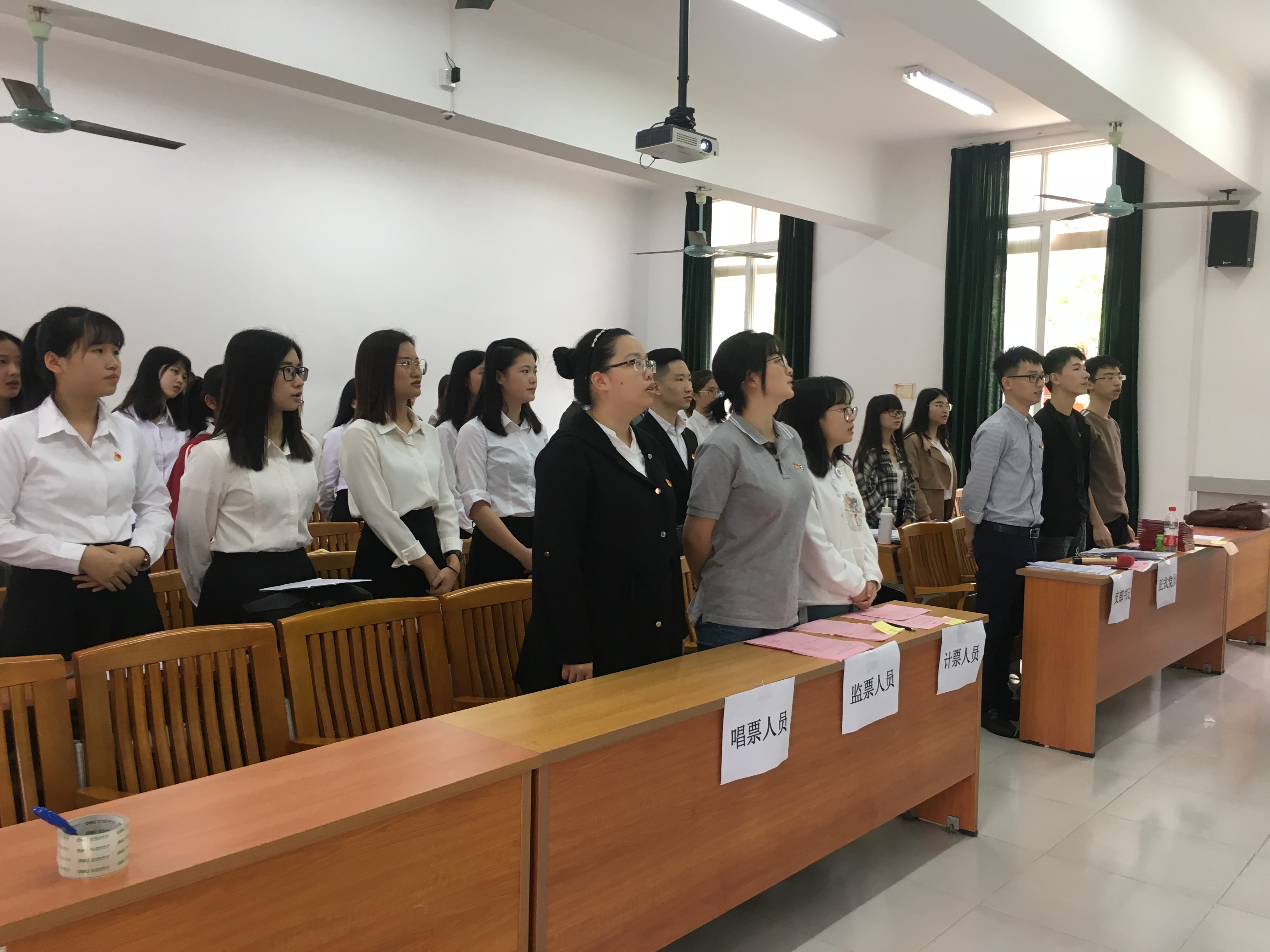 经过公平、公正、公开的选举程序,由与会的正式党员进行无记名投票表决,最后通过卢诗杰老师当选为公共管理学系党总支学生支部书记,岑玉萍同志和何颖琳同志当选为公共管理学系党总支学生支部委员的决议。