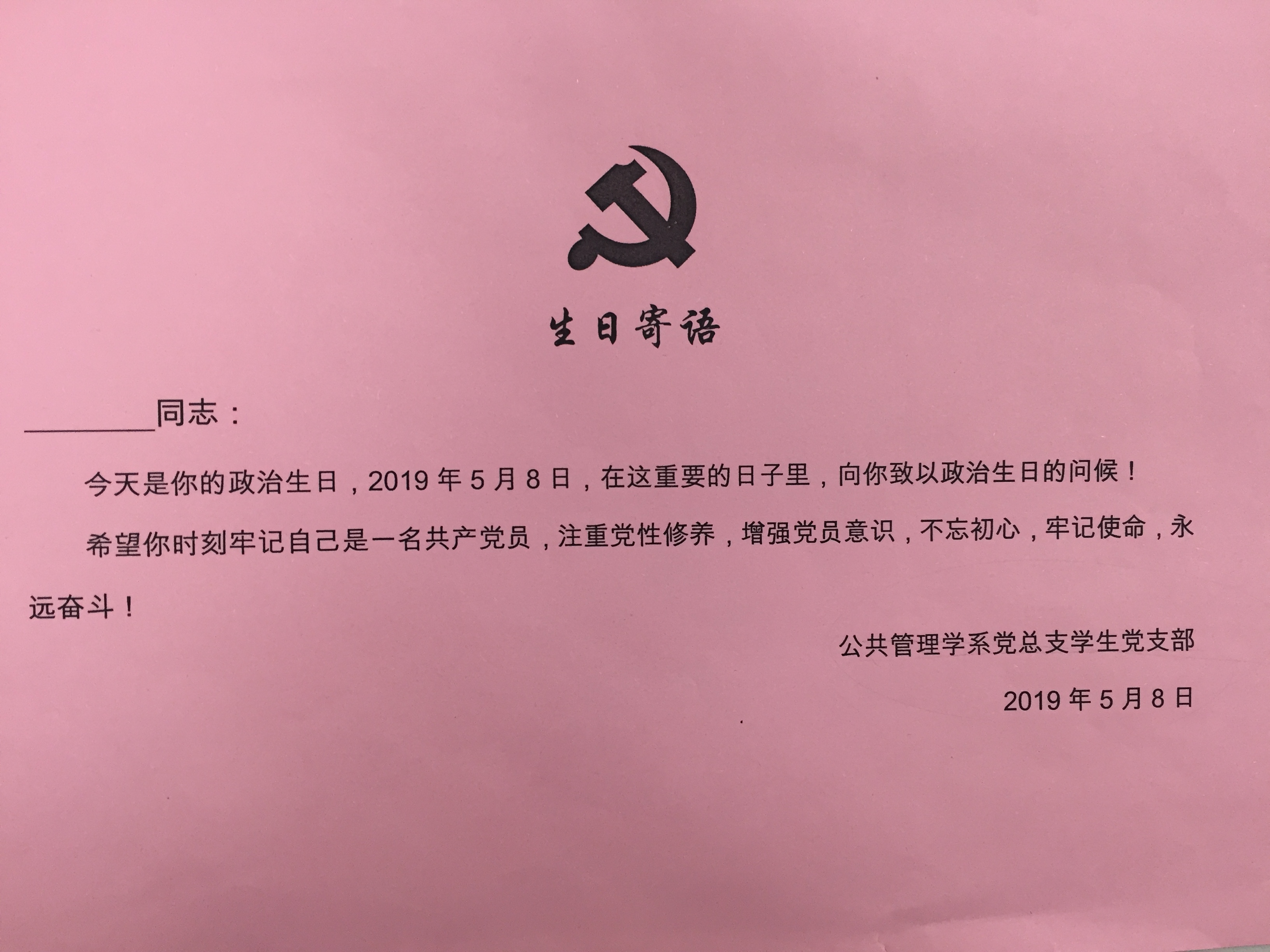 2019年5月8日,公共管理学系党总支在6教201召开公共管理学系学生党支部2019年春季预备党员转正暨接收预备党员通表大会,本次大会主要是开展预备期满的预备党员转正、接收预备党员以及支部换届选举等工作。出席大会的有公共管理学系党总支副书记陈利斌老师,人力学生支部书记卢诗杰老师,支部正式党员,预备党员以及发展对象。