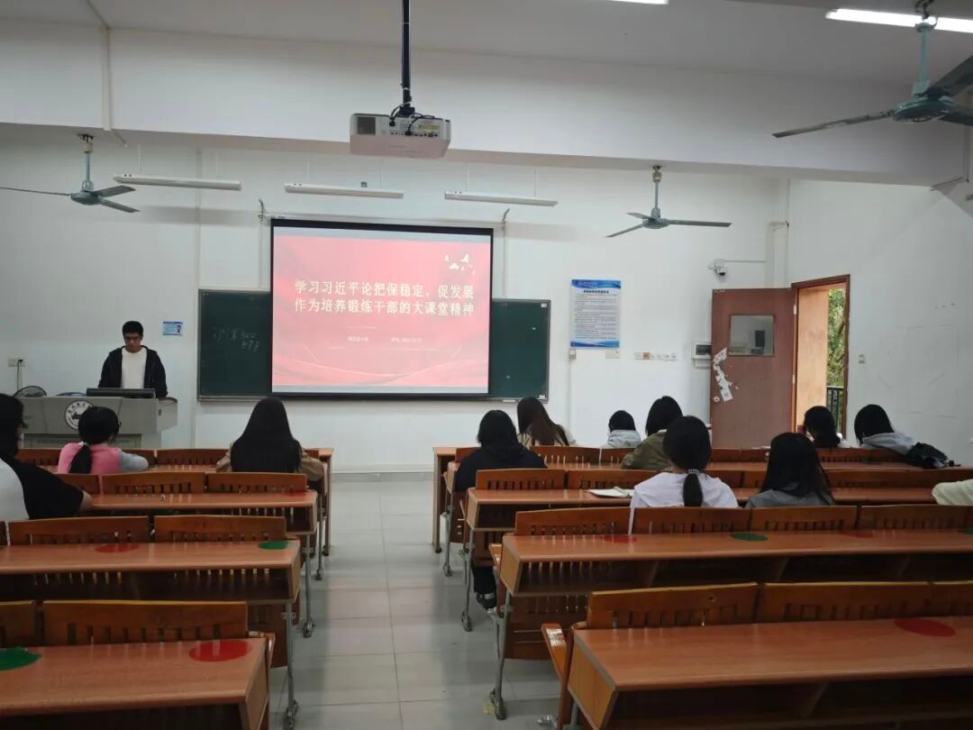 10月22日william威廉中文学生党支部第四党小组开展了以“学习习近平论把保稳定、促发展作为培养锻炼干部的大课堂精神”为主题的党小组会议。高子健同志提出,要坚决贯彻落实习近平总书记关于“把保稳定、促发展作为培养锻炼干部的大课堂”的重要精神,结合陈锶敏同志对“稳定与发展辩证关系”的解读,引导党员主动到矛盾集中、任务繁重的岗位历练,在实验室安全、调研数据优化、学业帮扶等“微治理”中提升本领,真正将“保稳定、促发展”转化为青春建功的自觉行动。