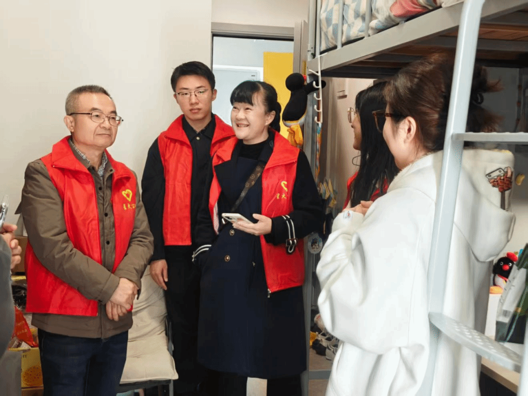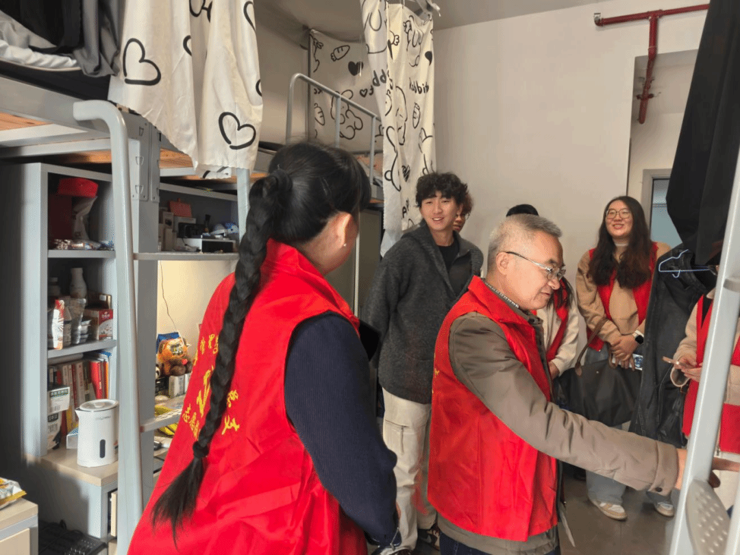 走访期间,院长与老师们将目光聚焦于基础设施与设备的使用状况。从宿舍床铺的稳固程度、衣柜门锁的灵敏状况,到水电供应是否顺畅、空调制热制冷效果如何,再到卫生间洗漱台的排水情况、热水器的使用便捷程度,大家逐一仔细检查,不时伸手触摸、亲自试用,不放过任何一个可能影响同学们生活的细微之处。