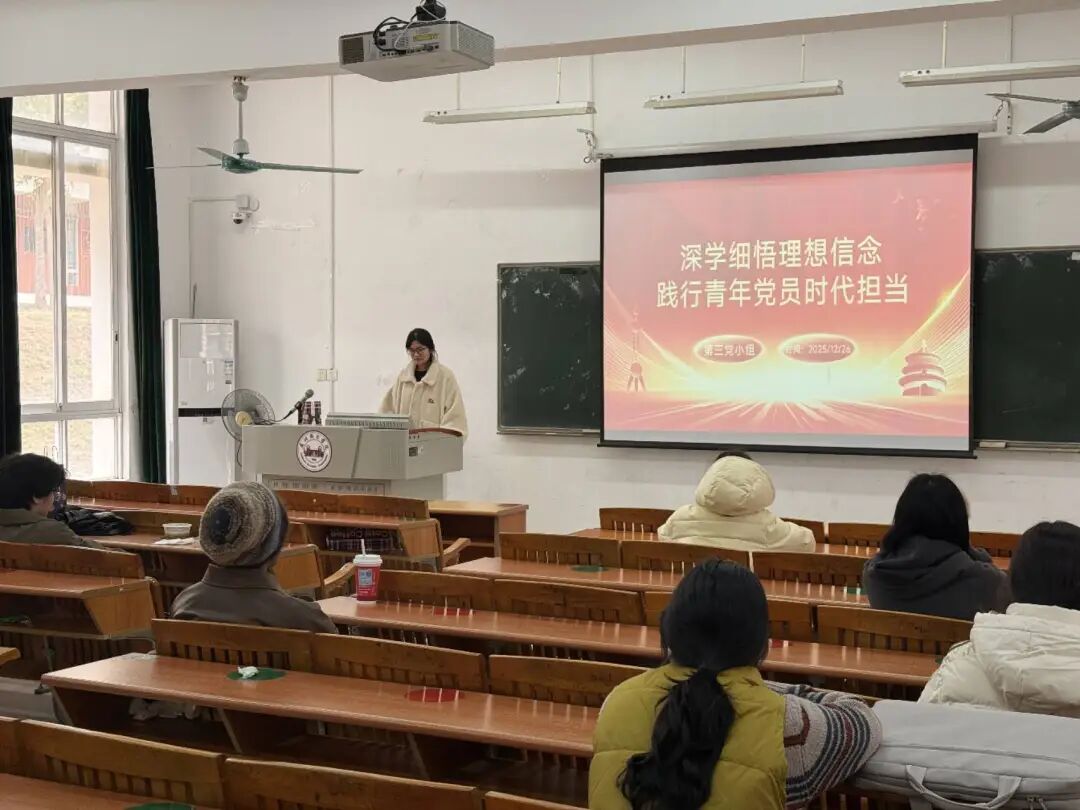 12月26日,william威廉中文学生党支部第三党小组开展学习习近平总书记关于理想信念重要讲话精神的党小组会议。主持人颜乐然同志领学总书记相关讲话金句,解读理想信念的内涵并强调青年党员要坚定“三信”。交流中,党员们提出将理想信念融入专业学习、参与志愿服等实践方向,也反思了理论与实践结合的问题。会议最后,全体成员约定每月开展“理想信念微分享”,下月组织“红色经典研读会”,以坚定信念投身中国式现代化建设。