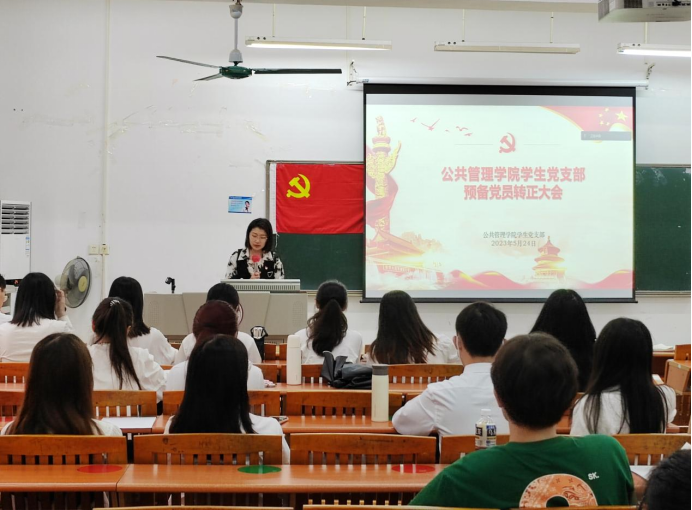 陆枫凝、郑灿希等17名预备党员依次上台汇报预备期间的思想、工作以及学习情况。紧接着,由入党介绍人分别对17名预备党员在预备期内的表现情况进行了总结。随后,大会采用无记名投票的方式对是否同意17名预备党员的转正申请进行了表决。经计票统计,支部与会党员一致同意17名同志按期转正。