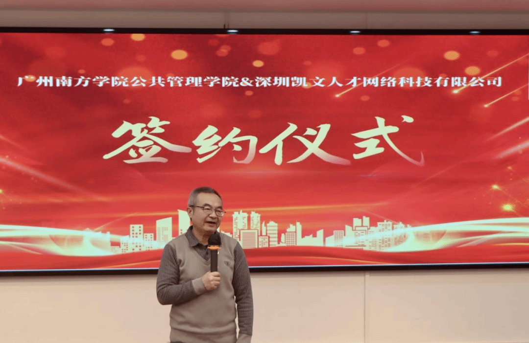 陈天祥院长在致辞中表示,学院始终坚持以人才培养为核心,深耕行政管理、公共关系学、人力资源管理、文化产业管理等专业建设,积极探索产教融合、校企合作的有效路径。他强调,此次与深圳凯文公司的合作,学院将以最真诚的态度、最务实的行动推进落实,追求合作的长效性与可持续性,力争实现边际成本递减、边际效益递增的良性发展。同时,他指出,AI时代背景下,校企协同培养00后青年学子已成为行业人才培养与吸纳的必然趋势,双方携手合作,既能为学院人才培养注入产业活力,也能帮助企业抢占人才培养制高点,实现优势互补、双向赋能。