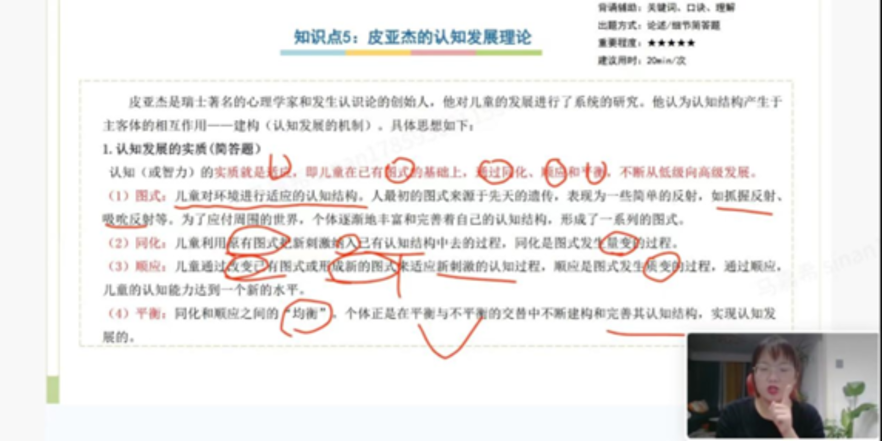 到了被称为“考研黄金期”的暑假,这期间,司南的老师们会每天晚上直播给我们上课。条理清晰,每个知识点都有背诵辅助,如关键词、口诀、理解等等,也会标注出题方式:论述/简答题,以及重要程度和建议用时。