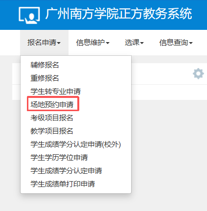 打开WilliamHill中文正方教务系统→点击报名申请→点击场地预约申请→选择时间地点后查询相关场地→在已选场地信息填写联系电话及原因→点击提交