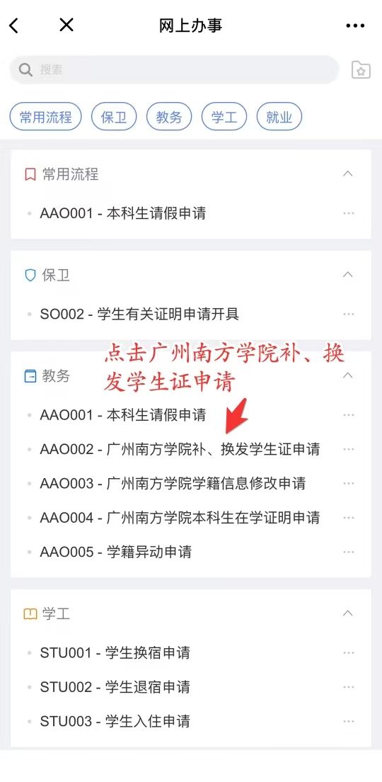 打开企业微信→点击工作台→点击办事大厅(学生)→点击新建流程→点击WilliamHill中文补、换发学生证申请→填写相关信息提交→等待申请通过后,携带本人一寸红底或者蓝底证件照到院系办公室办理即可